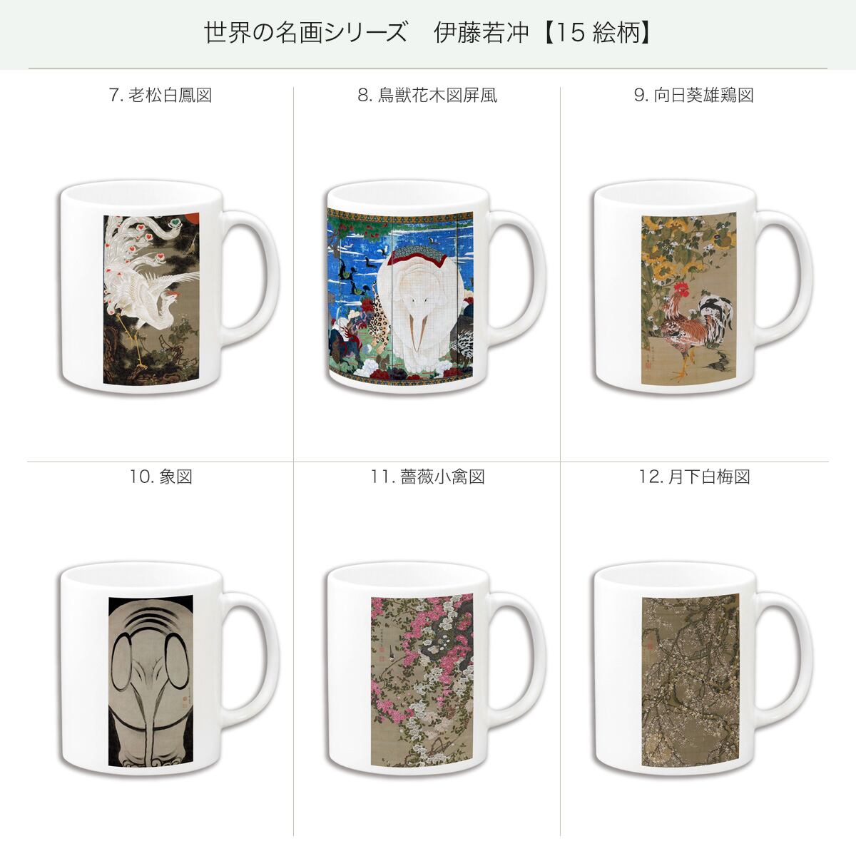 マグカップ 【世界の名画】 伊藤若冲 1弾 コップ 食器 ☆奇想派☆ 日本画 動物画 幻想 写実 動植綵絵 art 絵画 芸術 名画 おしゃれ ギフト インテリア