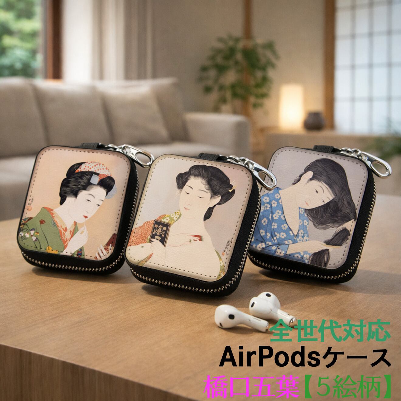 AirPods/Proケース 互換性あり 全世代対応 【世界の絵画】 橋口五葉 ワイヤレスイヤホンケース カラビナ付き ☆浮世絵☆ 新版画 美人画 art 絵画 おしゃれ 衝撃吸収