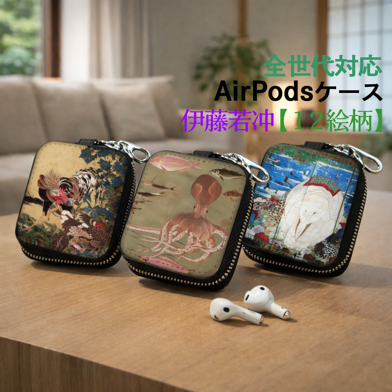 AirPods/Proケース 互換性あり 全世代対応 【世界の絵画】 伊藤若冲 ワイヤレスイヤホンケース カラビナ付き 1弾 ☆奇想派☆ 日本画 動物画 幻想 写実 動植綵絵 art 絵画 おしゃれ 衝撃吸収