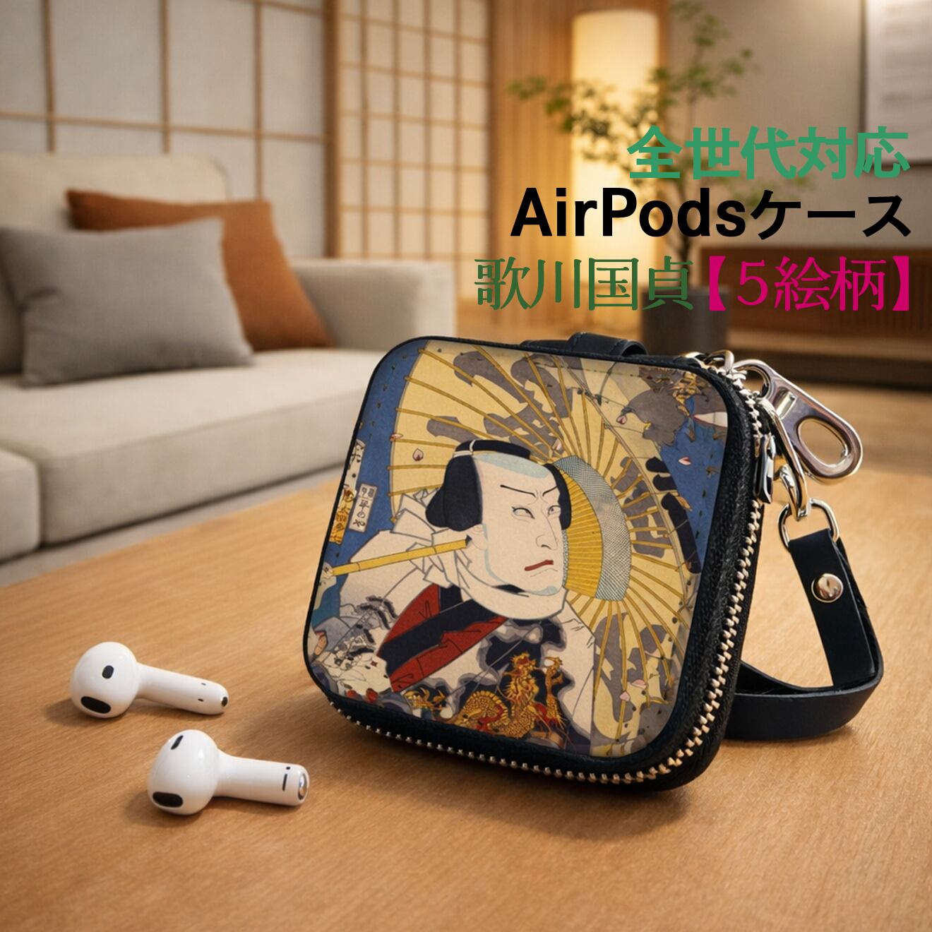 AirPods/Proケース 互換性あり 全世代対応 【世界の絵画】 歌川国貞 ワイヤレスイヤホンケース カラビナ付き 豊国 ☆浮世絵☆ 歌舞伎役者 役者絵 art 絵画 おしゃれ 衝撃吸収
