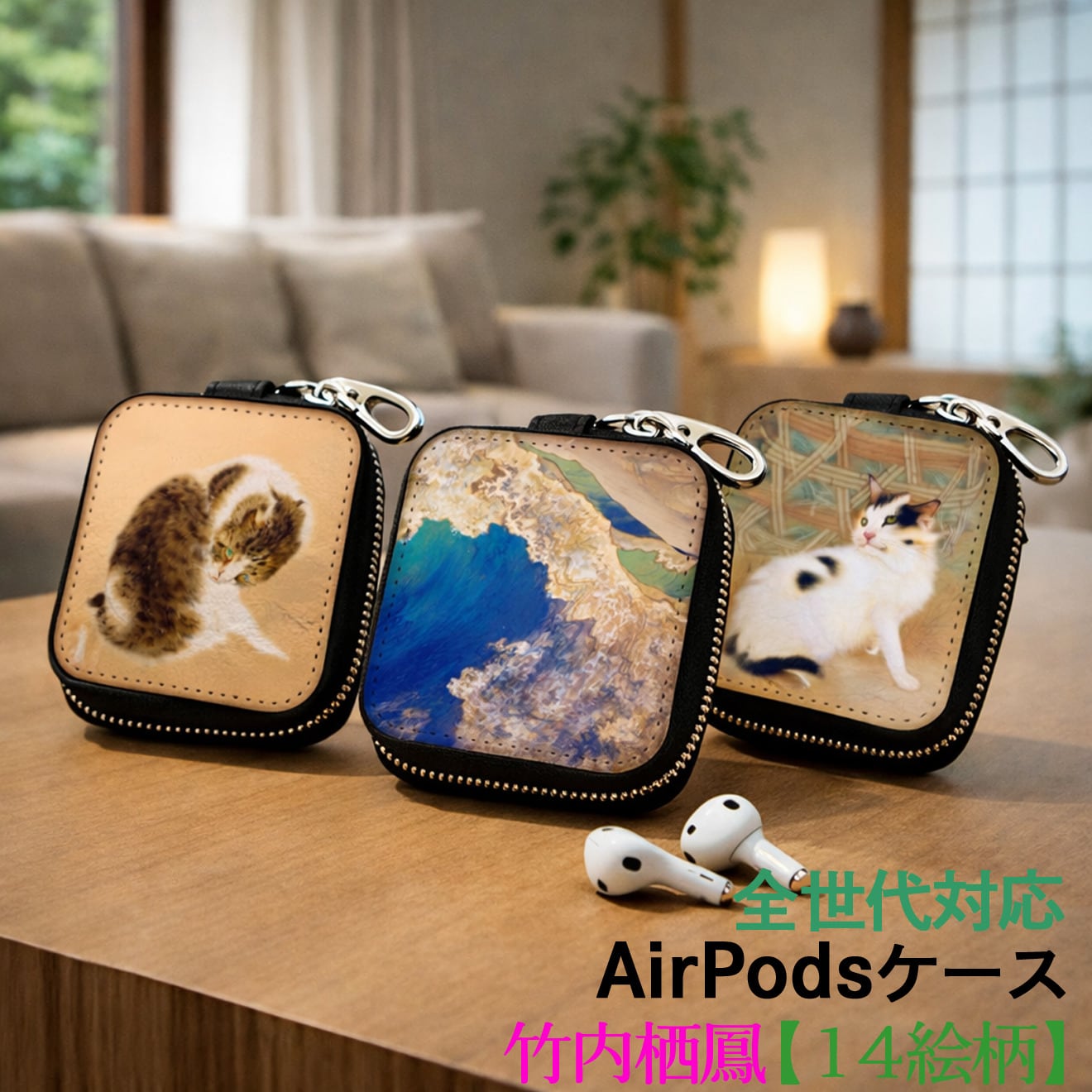 AirPods/Proケース 互換性あり 全世代対応 【世界の絵画】 竹内栖鳳 ワイヤレスイヤホンケース カラビナ付き ☆日本画☆ 動物 生き物 写実 猫 ネコ art 絵画 おしゃれ 衝撃吸収