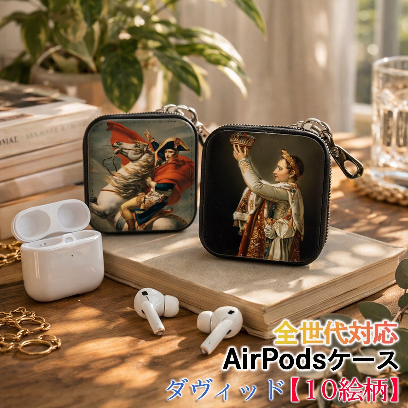 AirPods/Proケース 互換性あり 全世代対応 【世界の絵画】 ダヴィッド ワイヤレスイヤホンケース カラビナ付き ☆新古典主義☆ フランス ナポレオン art 絵画 おしゃれ 衝撃吸収