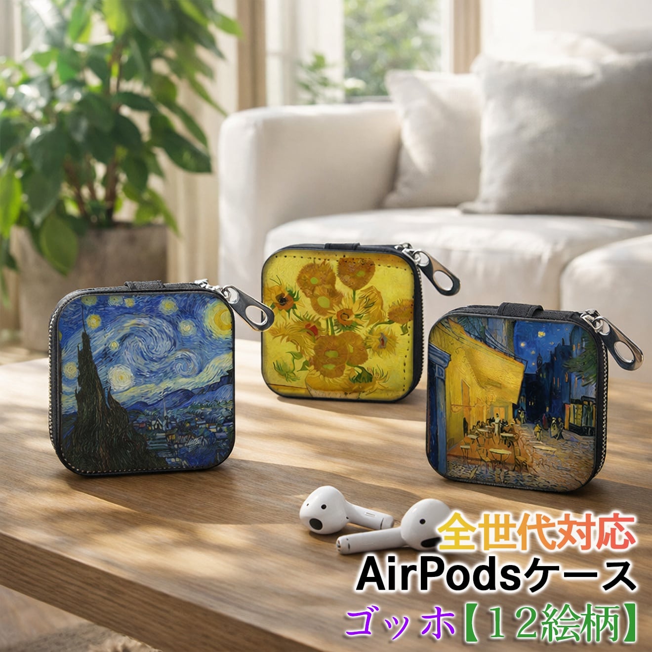 AirPods/Proケース 互換性あり 全世代対応 【世界の絵画】 ゴッホ ワイヤレスイヤホンケース カラビナ付き ☆印象派☆ ポスト印象派 art 絵画 おしゃれ 衝撃吸収