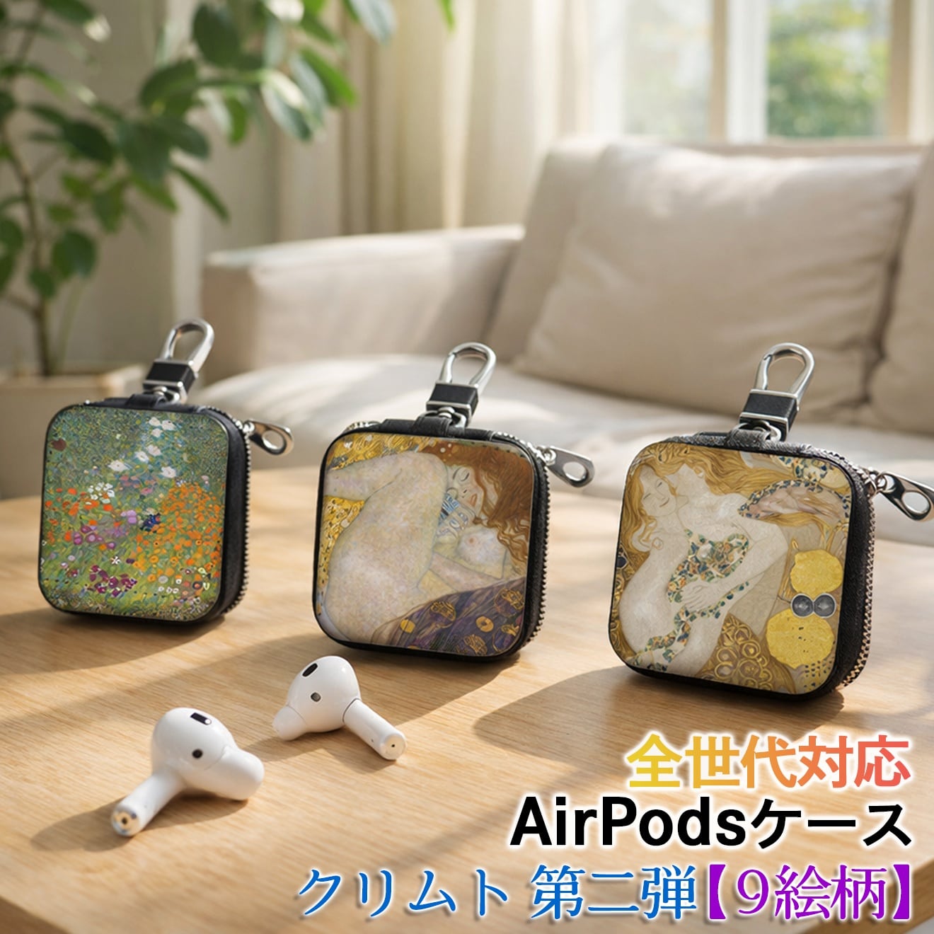 AirPods/Proケース 互換性あり 全世代対応 【世界の絵画】 クリムト 2弾 ワイヤレスイヤホンケース カラビナ付き ☆アール・ヌーヴォー☆ 水蛇 生と死 黄金 絵画 アート 衝撃吸収