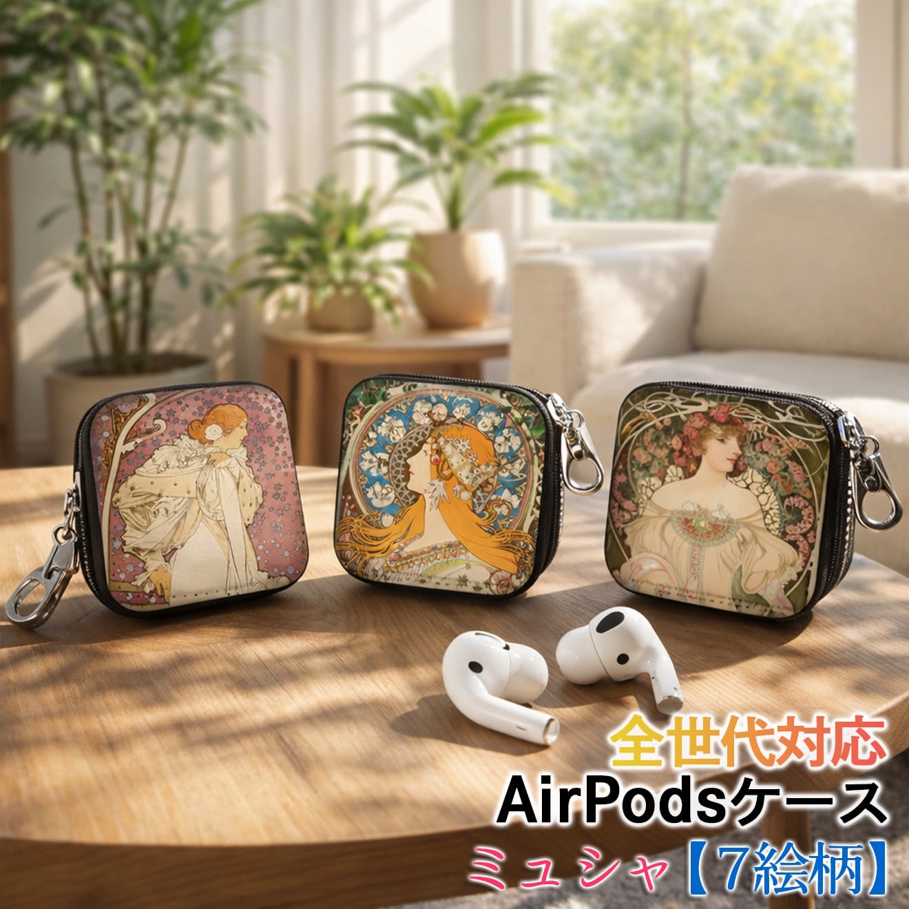 AirPods/Proケース 互換性あり 全世代対応 【世界の絵画】 ミュシャ ワイヤレスイヤホンケース カラビナ付き ☆アール・ヌーヴォー☆ 花 美しい 女性 art 絵画 おしゃれ 衝撃吸収
