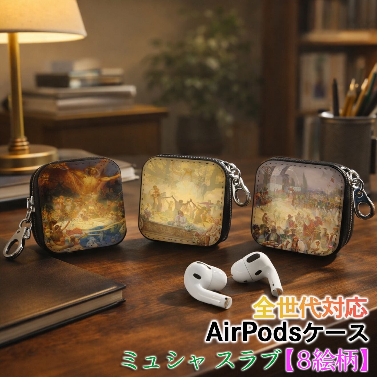 AirPods/Proケース 互換性あり 全世代対応 【世界の絵画】 ミュシャ スラブ ワイヤレスイヤホンケース カラビナ付き ミュシャ チェコ スラブ民族 歴史 スラヴ叙事詩 ☆アール・ヌーヴォー☆ art 絵画 おしゃれ 衝撃吸収