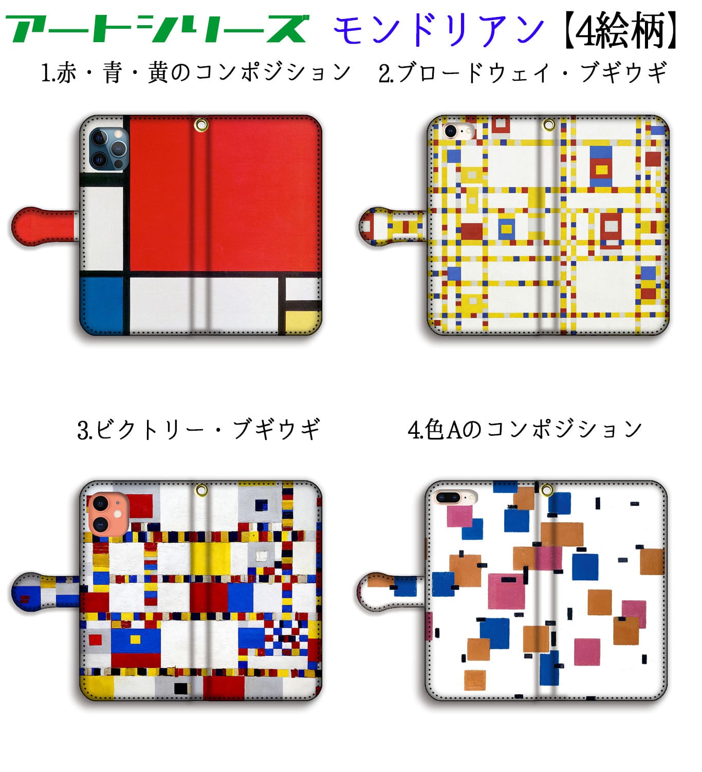 手帳型 スマホケース モンドリアン 【世界の名画】 赤・青・黄のコンポジション ☆抽象画☆ ブロードウェイ・ブギウギ アート 絵画 美術 iPhone Google Pixel Xperia Galaxy AQUOS arrows HUAWE | Art Store.アートなスマホケース専門店