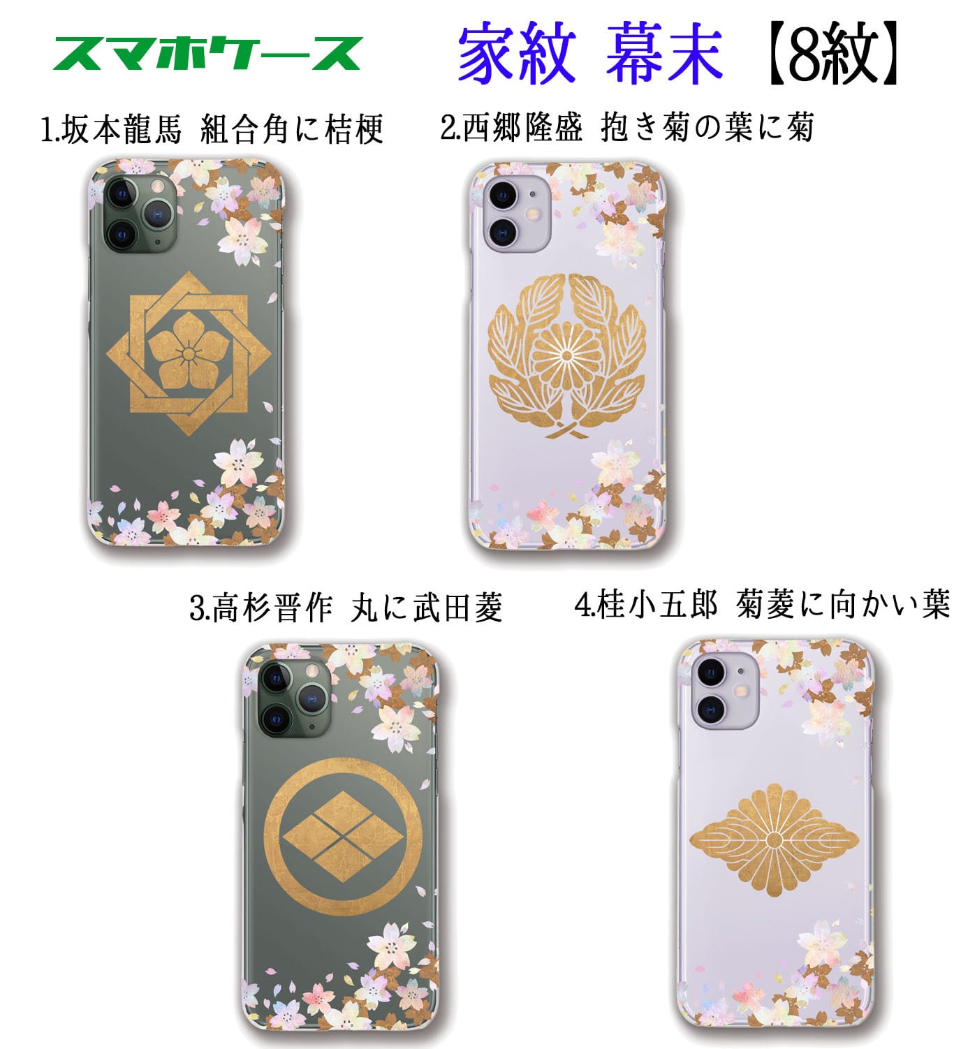 坂本龍馬、西郷隆盛、高杉晋作などから幕末、明治維新の志士たちのの家紋がスマホケースになって登場!